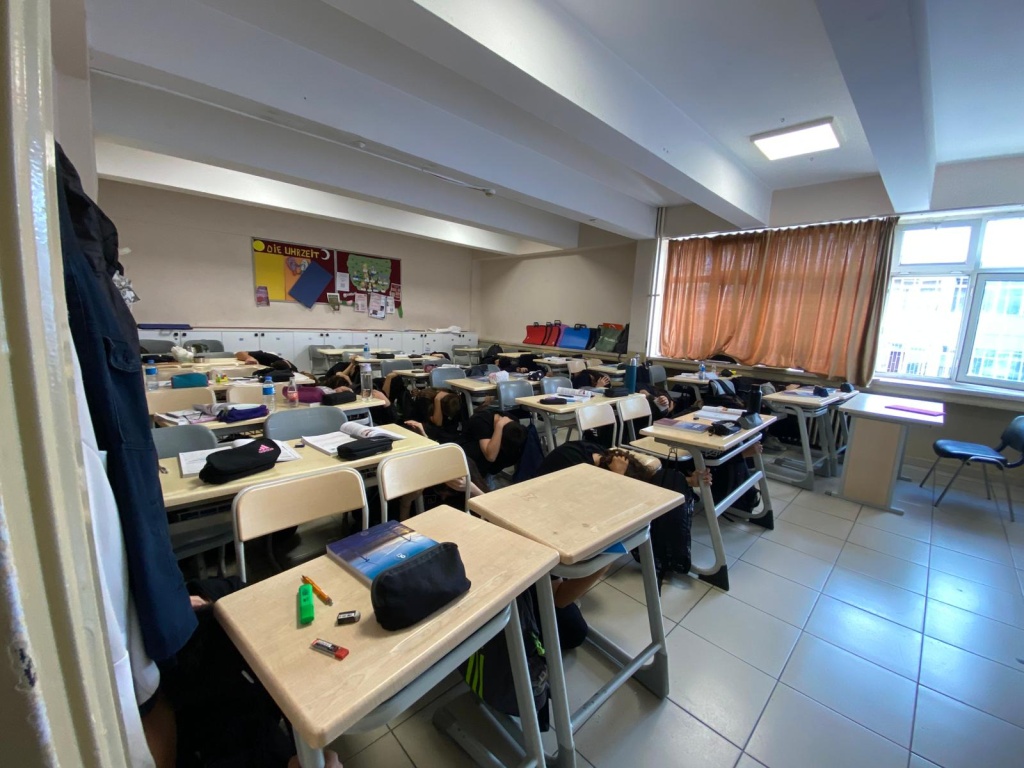 30 Eylül Salı günü okulumuzun tüm sınıflarında çök-kapan-tutun tatbikatı gerçekleştirdik.