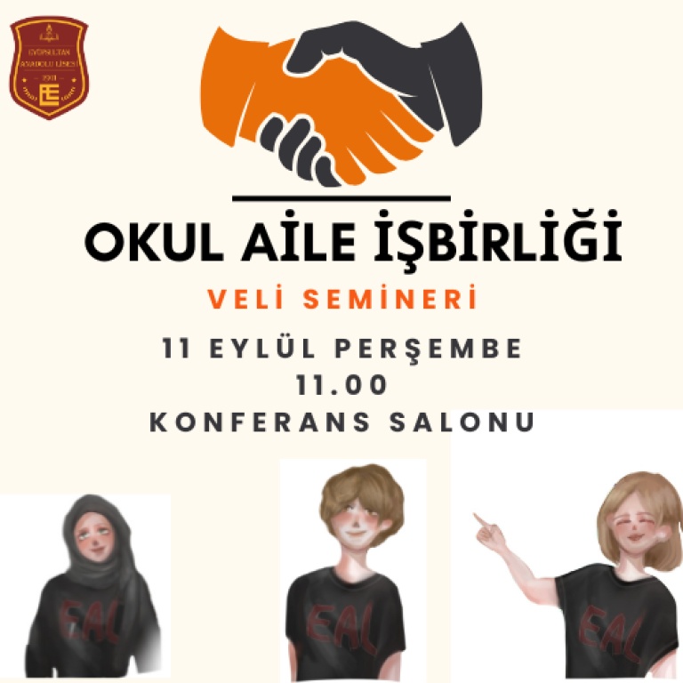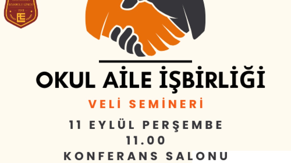 2025-2026 Eğitim Öğretim yılı oryantasyon haftası ve veli akademileri kapsamında 11 Eylül Perşembe günü saat 11.00'da okul konferans salonumuzda Okul-Aile İşbirliği başlıklı seminerimiz için hepinizi bekliyoruz.