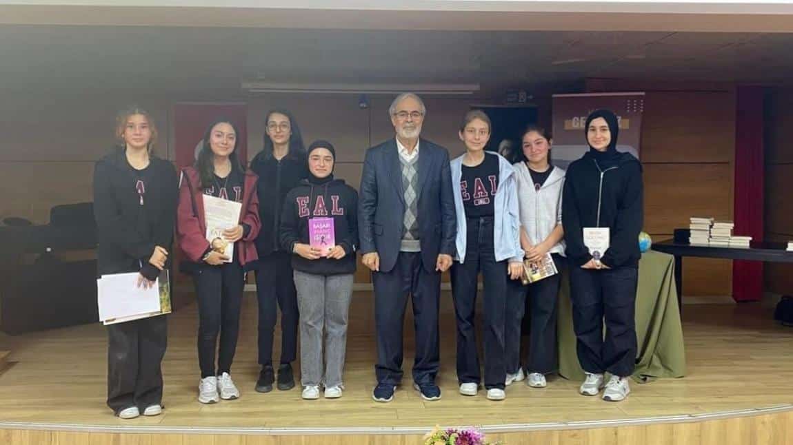 Yazar, gazeteci, eğitimci sayın Ali Erkan Kavaklı'yı bugün okulumuzda ağırladık. Bizlere başarı hakkında birçok bilgi vermekle kalmayıp bu konuda yaşadığı olayları, sıkıntıları ve bu olayları nasıl çözümlediğini paylaştı. Kendi hedeflerimiz için bize ilham kaynağı destekleyici ve ümit verici olan bu konuşmadan dolayı kendisine çok teşekkür ederiz. Bir dahaki yazar buluşmamızda tekra görüşmek dileğiyle... Dinleyen herkese çok teşekkür ederiz.